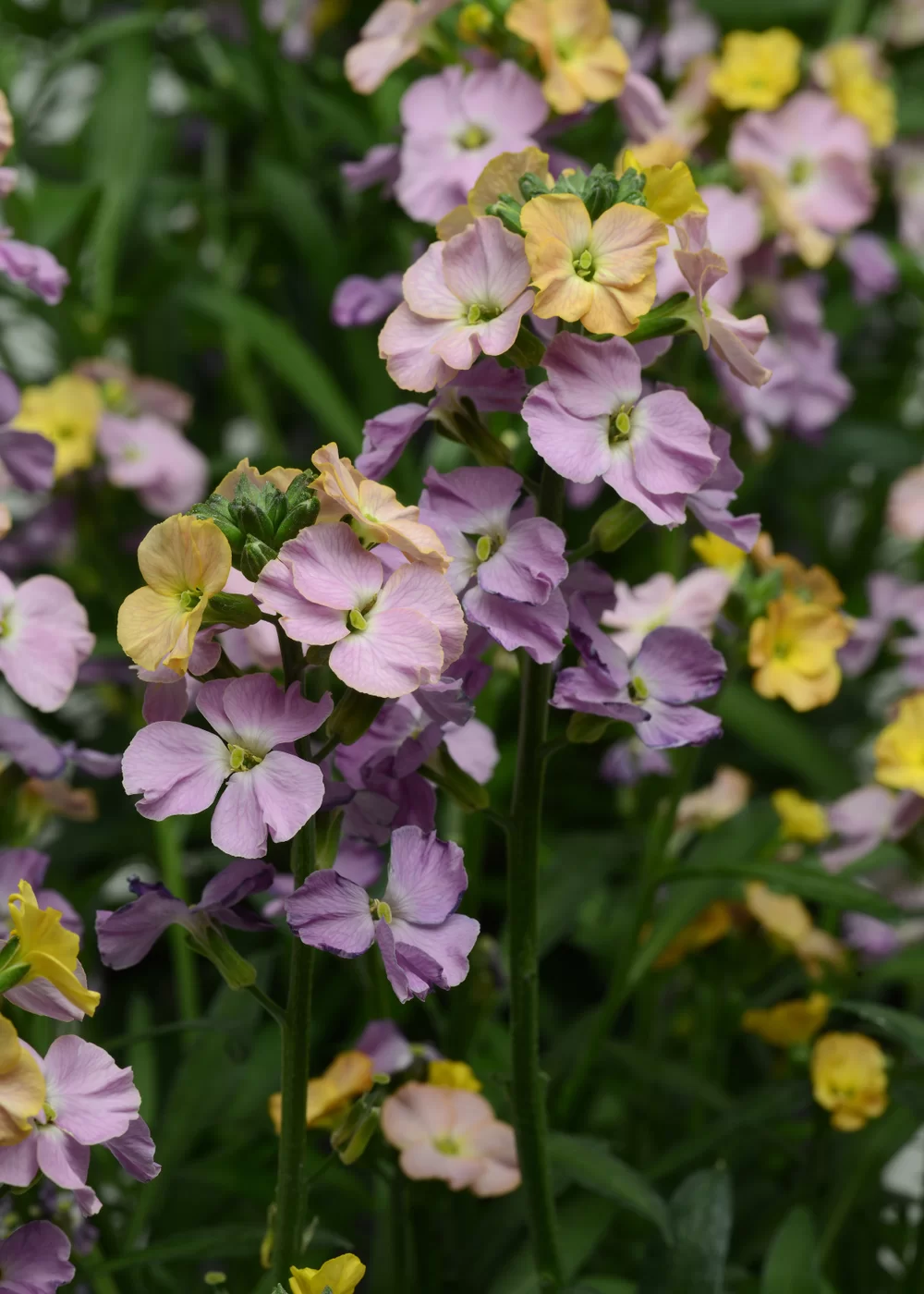 Vertikāls augums, mīl saulainās vietas, bagātīgā krāsu gammā.